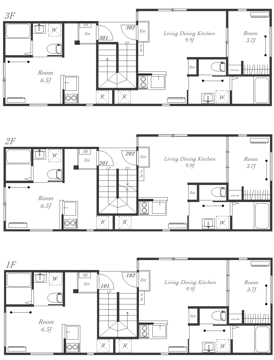 構造:木造3階建/全6戸(1R・1LDK)