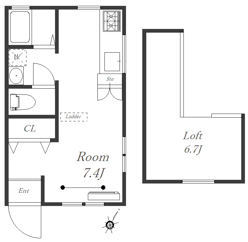 | 間取り | 1R+ロフト |